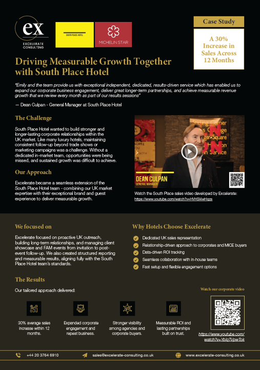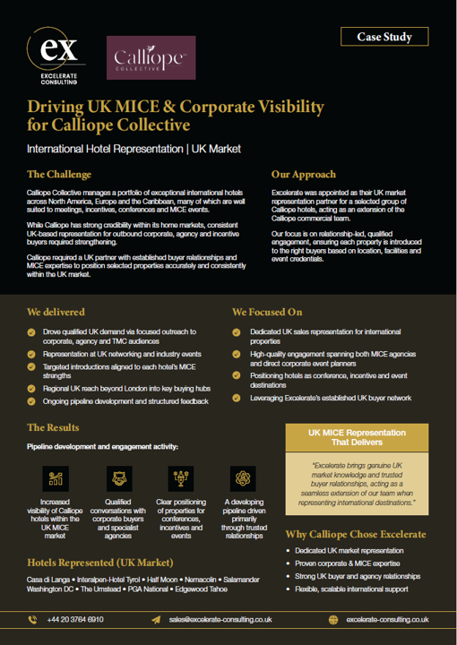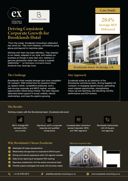 Strong UK-wide visibility, buyer relationships built, & consistent pipeline growth across key corporate & MICE segments.
